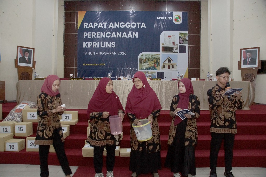 Rapat Anggota Perencanaan Tahun Anggaran 2026 diselenggarakan di Aula Fakultas Ekonomi dan Bisnis Universitas Sebelas Maret, Rabu 12 November 2025 mulai dari pukul 08.00 sampai dengan 12.00 WIB. Rapat tersebut dihadiri oleh Bapak Prof. Dr. Hartono, dr., M.Si. Rektor Universitas Sebelas Maret selaku Pembina KPRI UNS serta dihadiri 224 perwakilan anggota, 7 pengurus, 5 pengawas, dan tamu undangan dari Dinas Koperasi dan UMKM Kota Surakarta, Dinas PKPRI Kota Surakarta.