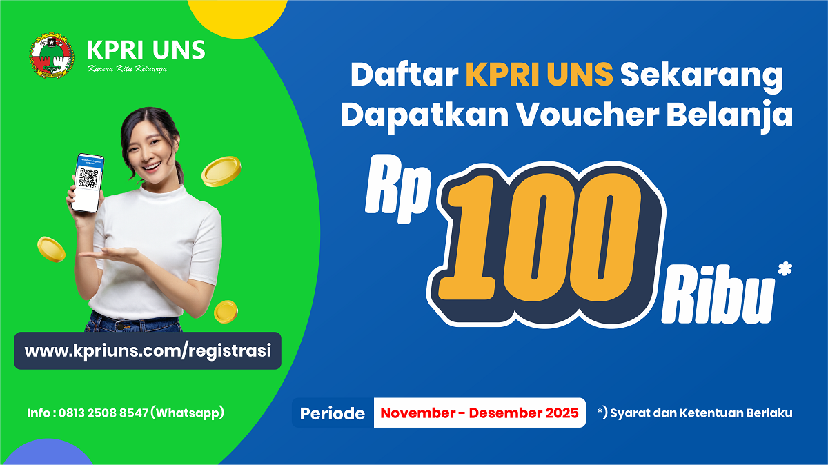 Dapatkan Voucher Belanja senilai Rp 100.000 di Mangesthi Mart degan mendaftar sebagai Anggota KPRI UNS. Periode terbatas hanya sampai dengan 31 Desember 2025. Jangan lewatkan kesempatan ini!